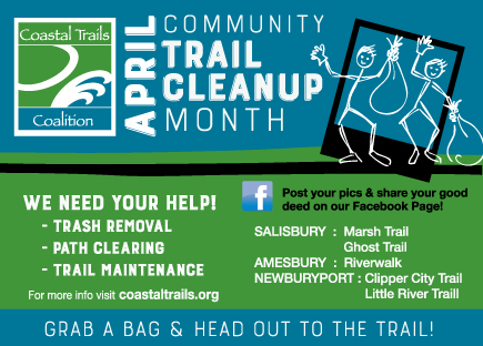 Check out the following list of spring cleanup tasks needed on the trail network in Amesbury, Newburyport and Salisbury. Most can be done independently, at your own pace and convenience. Be sure to post pictures of you at work on our Facebook page to help raise awareness and share the fun with others! Thanks in advance for helping out.