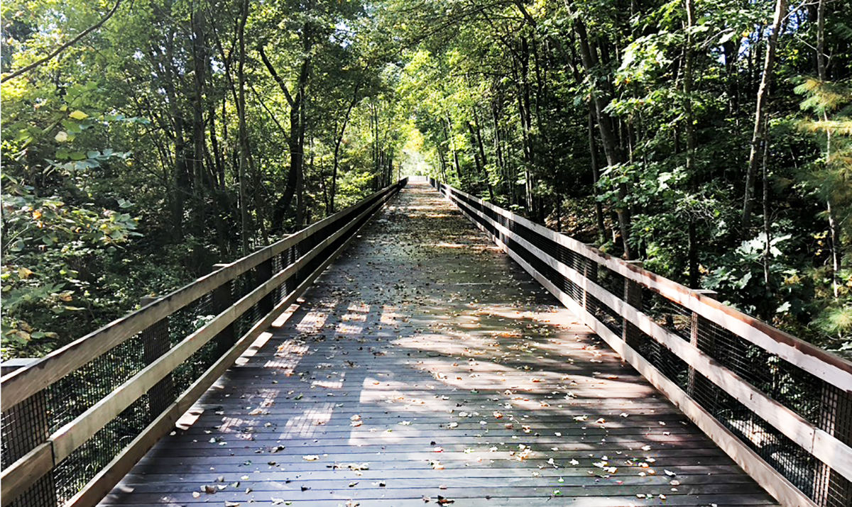 - Completing the Amesbury-Salisbury Trail Connector that extended Salisbury’s Ghost Trail under I-95 to Elm Street in Amesbury. This 0.8-mile project also includes a shared use path along Rabbit Road connecting the Ghost Trail to Route 110 and the Garrison Trail over the I-95 Whittier Bridge as well as a trailhead at the historic Chain Bridge filling station in Amesbury with a stairway to the Garrison Trail.