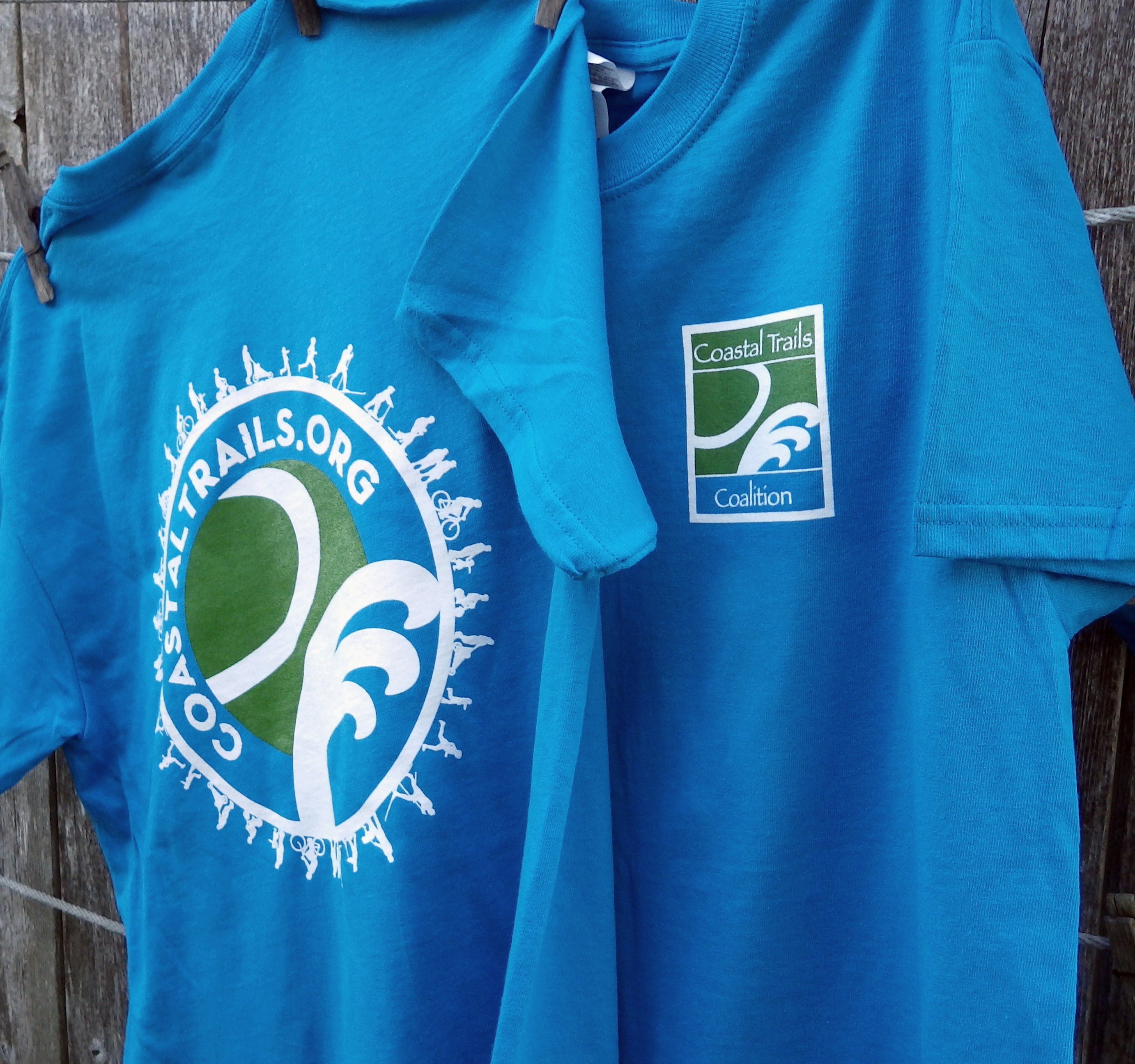 Hit the trails in this stylish cotton t-shirt in teal with Coastal Trails Coalition logos front and back.